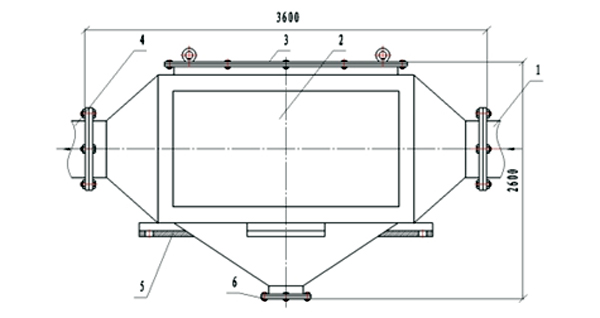 1設(shè)備進(jìn)風(fēng)口、2催化劑盒、3設(shè)備上蓋、4設(shè)備出風(fēng)口、5設(shè)備固定位和6設(shè)備卸料口